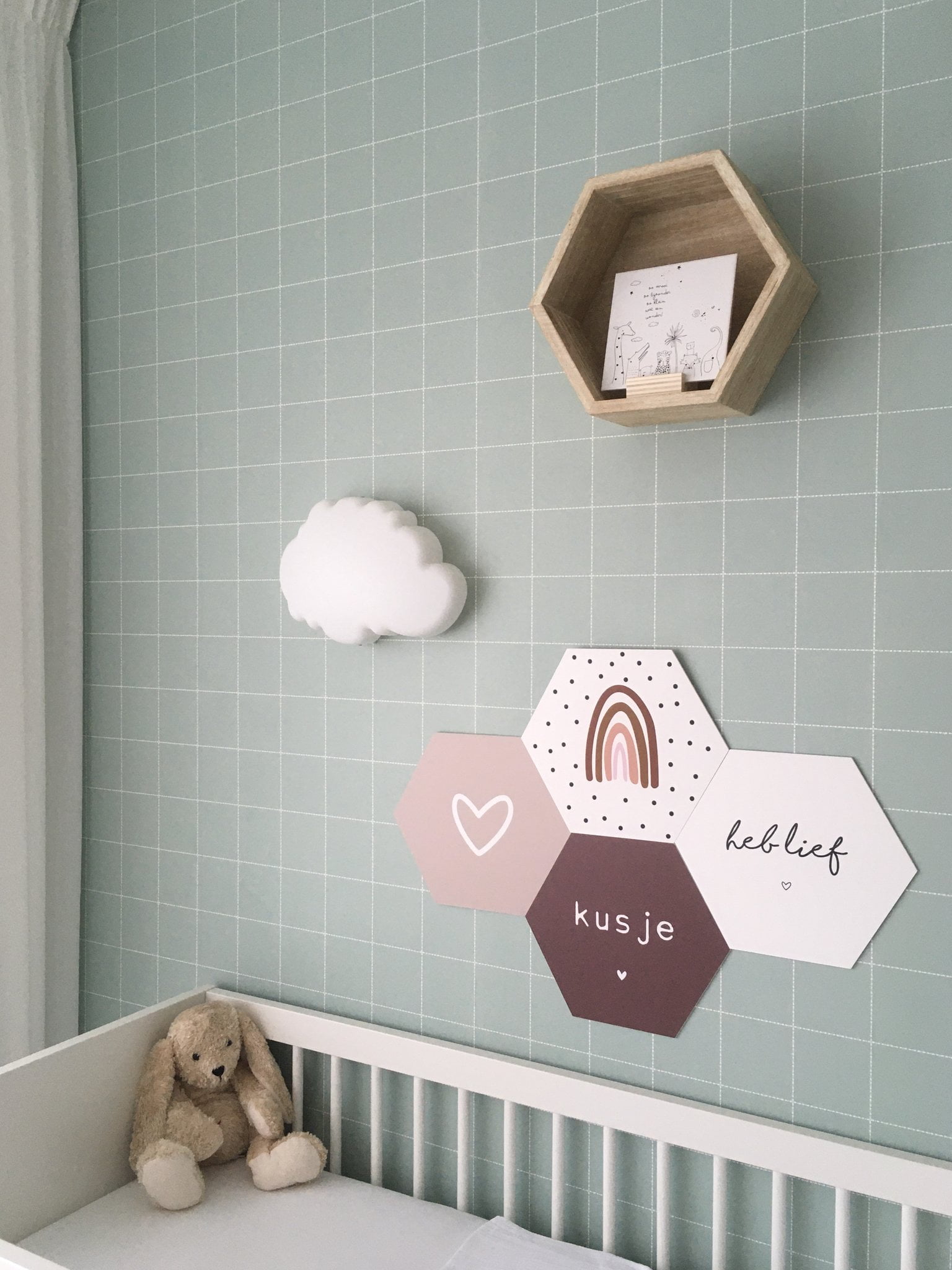 Met verschillende hexagons maak je heel eenvoudig een unieke sfeer in je huis. De vorm en uitstraling van de 6 hoekige hexagons zijn strak maar speels. Je kan je collage blijven uitbouwen en na verloop van tijd verwisselen.