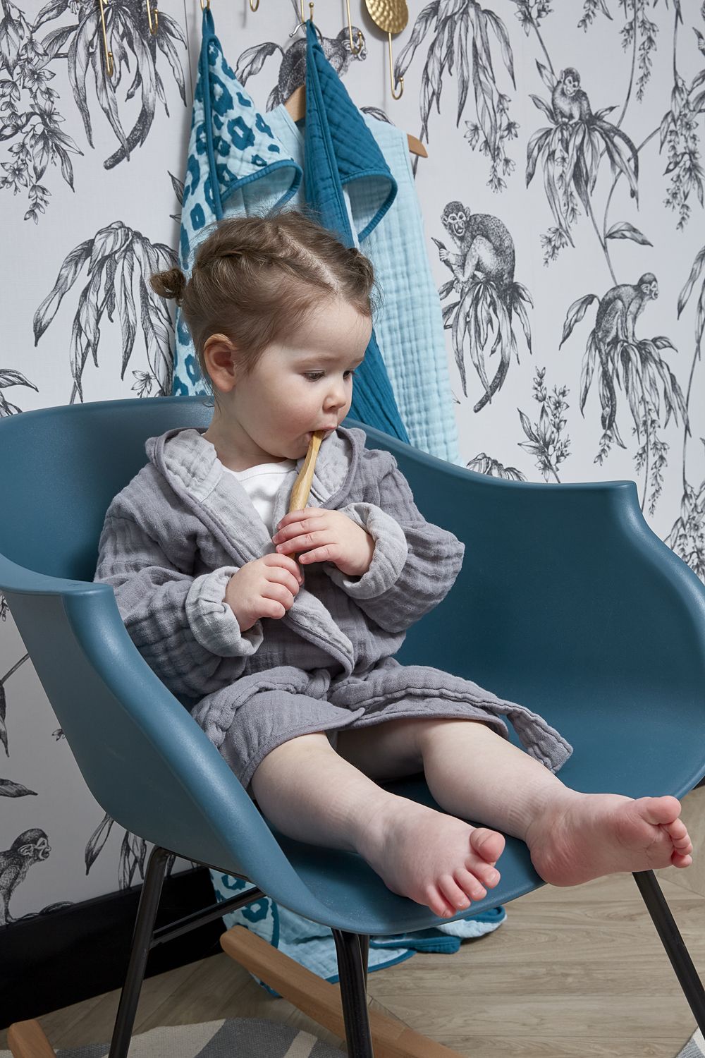 De Meyco hydrofiele badjas is gemaakt van 100% katoen. Heerlijk zacht en comfortabel voor de tere babyhuid. Het hydrofiel neemt goed vocht op en is sneldrogend. De hydrofiele badjas is ideaal na het douchen, zwemmen of voor wat extra warmte over de pyjama. Het badjasje heeft mooie details zoals de capuchon en de getailleerde rug met twee vaste koordjes voor een goede pasvorm. Combineer deze stoere badjas bijvoorbeeld met de fijne hydrofiele washandjes van Meyco.